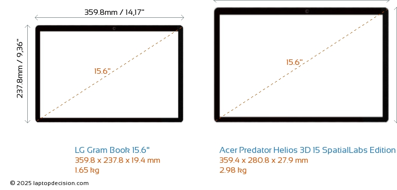 HDMIAmbos Gram Book 15.6" y Predator Helios 3D 15 SpatialLabs Edition cuentan con un puerto HDMI. Gram Book 15.6" ofrece 1x HDMI 1.4, mientras que Predator Helios 3D 15 SpatialLabs Edition ofrece 1x HDMI 2.1.