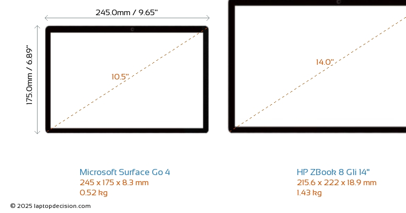 HDMI ZBook 8 G1i 14" cuenta con un puerto HDMI (1x HDMI 2.1) para conectar a monitores externos. Surface Go 4 no tiene puerto HDMI.