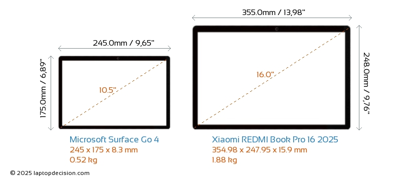 HDMI REDMI Book Pro 16 2025 cuenta con un puerto HDMI (1x HDMI 2.1) para conectar a monitores externos. Surface Go 4 no tiene puerto HDMI.
