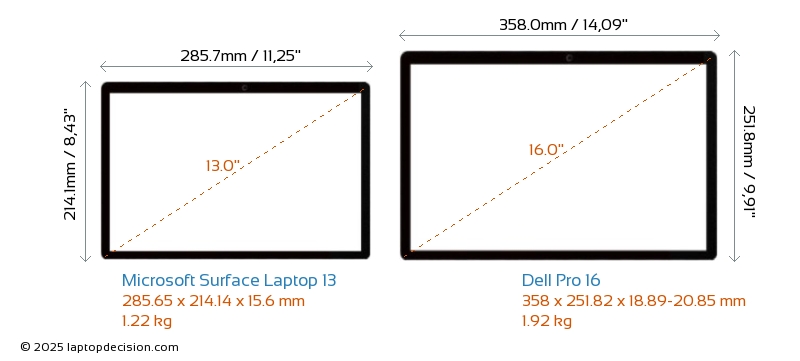HDMI Pro 16 cuenta con un puerto HDMI (1x HDMI 2.1) para conectar a monitores externos. Surface Laptop 13 no tiene puerto HDMI.