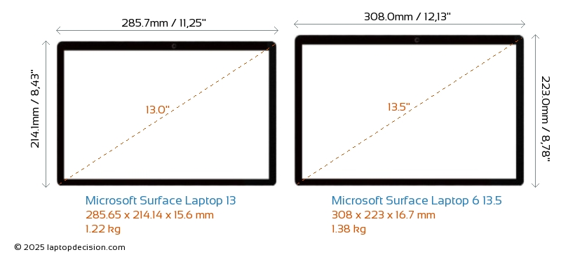 HDMINeither Surface Laptop 13 nor Surface Laptop 6 13.5 has an HDMI port for connecting to external monitors. Ninguno de los dos Surface Laptop 13 ni Surface Laptop 6 13.5 tiene un puerto HDMI para conectar a monitores externos.