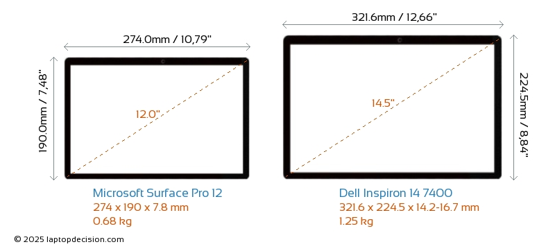 USB Inspiron 14 7400 está equipado con 2x USB 3.2 puertos USB-A. Surface Pro 12 no tiene puertos USB-A.Ambos Surface Pro 12 y Inspiron 14 7400 tienen puertos USB Type-C. Surface Pro 12 tiene 2x USB 4.0 puertos USB Type-C, mientras que Inspiron 14 7400 tiene 1x USB 4.0 puertos USB Type-C.