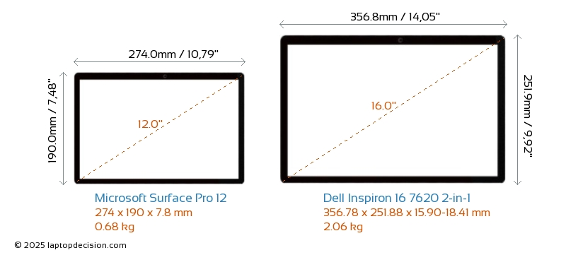HDMIInspiron 16 7620 2-in-1 cuenta con un puerto HDMI (1x HDMI 1.4) para conectar a monitores externos. Surface Pro 12 no tiene puerto HDMI.