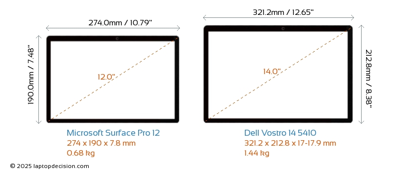 HDMIVostro 14 5410 cuenta con un puerto HDMI (1x HDMI 1.4) para conectar a monitores externos. Surface Pro 12 no tiene puerto HDMI.