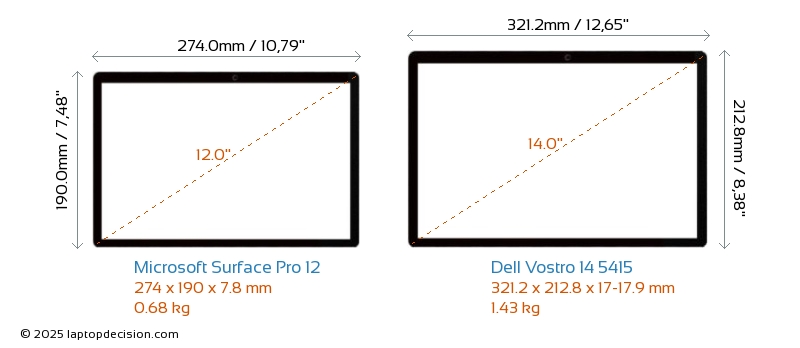 HDMIVostro 14 5415 cuenta con un puerto HDMI (1x HDMI 1.4) para conectar a monitores externos. Surface Pro 12 no tiene puerto HDMI.