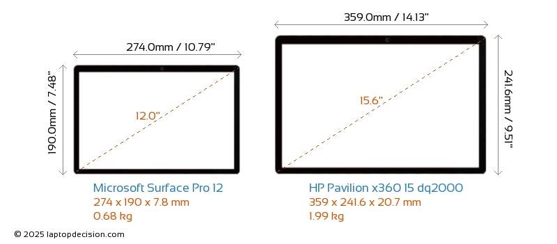 HDMIPavilion x360 15 dq2000 cuenta con un puerto HDMI (1x HDMI 1.4) para conectar a monitores externos. Surface Pro 12 no tiene puerto HDMI.