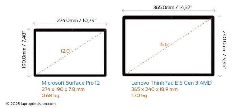 HDMIThinkPad E15 Gen 3 AMD cuenta con un puerto HDMI (1x HDMI 1.4) para conectar a monitores externos. Surface Pro 12 no tiene puerto HDMI.