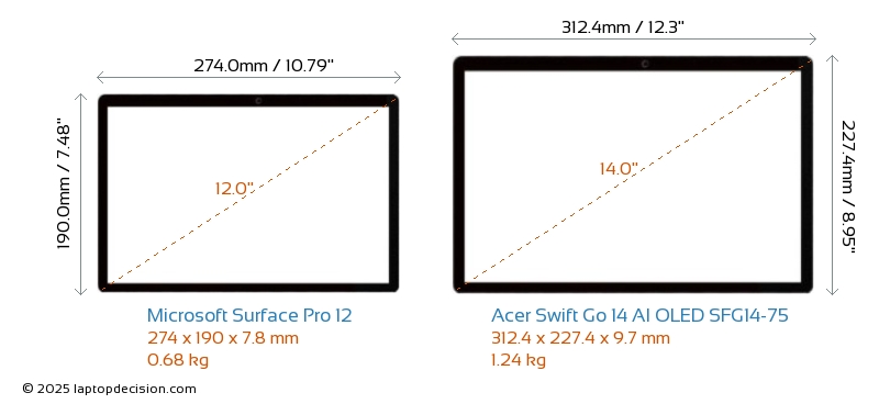 ThunderboltNinguno de los dos Surface Pro 12 ni Swift Go 14 AI OLED SFG14-75 tiene puerto Thunderbolt.