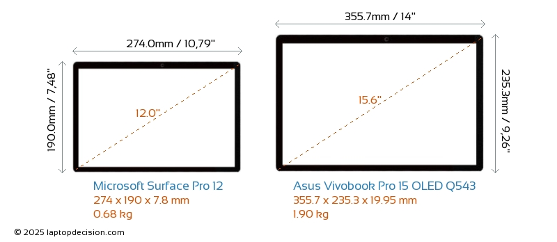 HDMI Vivobook Pro 15 OLED Q543 cuenta con un puerto HDMI (1x HDMI 2.1) para conectar a monitores externos. Surface Pro 12 no tiene puerto HDMI.