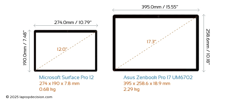 HDMI Zenbook Pro 17 UM6702 cuenta con un puerto HDMI (1x HDMI 2.1) para conectar a monitores externos. Surface Pro 12 no tiene puerto HDMI.