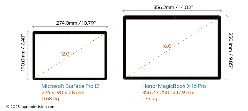 HDMI MagicBook X 16 Pro cuenta con un puerto HDMI (1x HDMI 1.4) para conectar a monitores externos. Surface Pro 12 no tiene puerto HDMI.