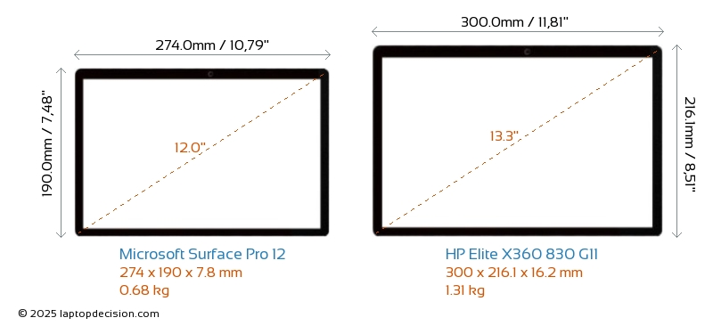 HDMI Elite X360 830 G11 cuenta con un puerto HDMI (1x HDMI 2.1) para conectar a monitores externos. Surface Pro 12 no tiene puerto HDMI.