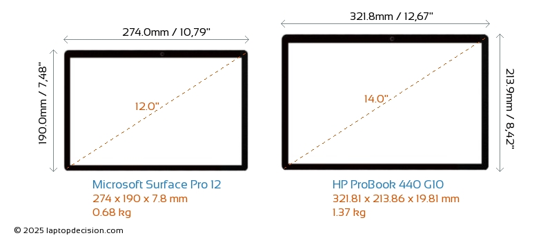 HDMI ProBook 440 G10 cuenta con un puerto HDMI (1x HDMI 2.1) para conectar a monitores externos. Surface Pro 12 no tiene puerto HDMI.