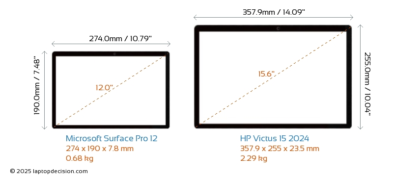 HDMI Victus 15 2024 cuenta con un puerto HDMI (1x HDMI 2.1) para conectar a monitores externos. Surface Pro 12 no tiene puerto HDMI.