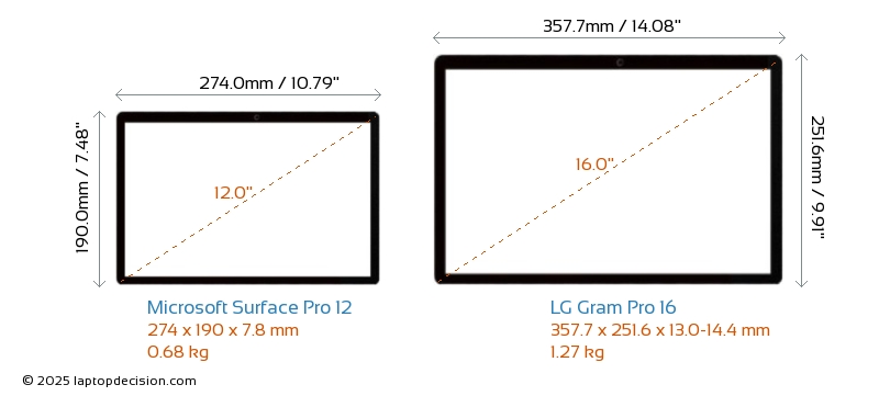 Microsoft Surface Pro 12 vs LG Gram Pro 16 Comparación