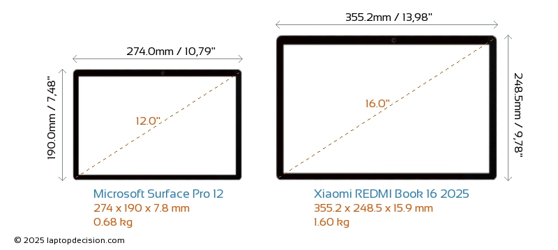 Conector de Audio REDMI Book 16 2025 está equipado con un conector de audio de 3.5 mm, permitiendo una conexión sin interrupciones a auriculares y altavoces. Surface Pro 12 no tiene un conector de audio de 3.5 mm.