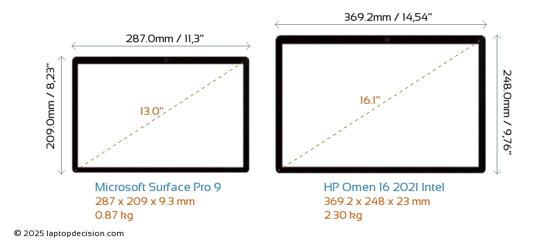 HDMI Omen 16 2021 Intel cuenta con un puerto HDMI (1x HDMI 2.1) para conectar a monitores externos. Surface Pro 9 no tiene puerto HDMI.