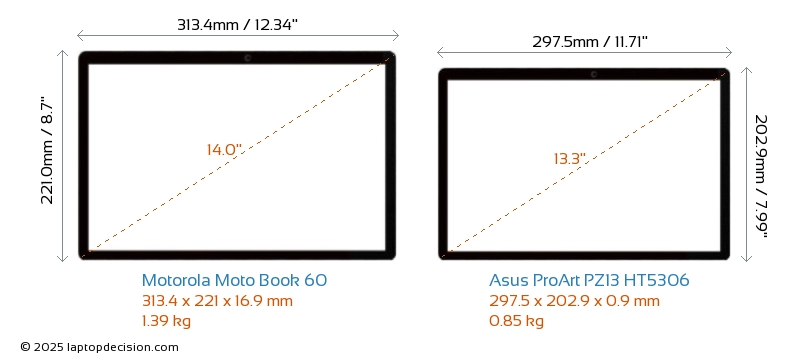 ThunderboltNinguno de los dos Moto Book 60 ni ProArt PZ13 HT5306 tiene puerto Thunderbolt.