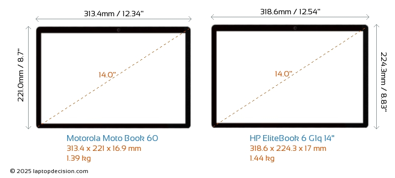 ThunderboltNinguno de los dos Moto Book 60 ni EliteBook 6 G1q 14" tiene puerto Thunderbolt.