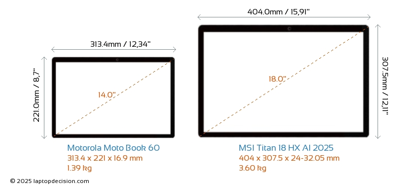 HDMIAmbos Moto Book 60 y Titan 18 HX AI 2025 cuentan con un puerto HDMI. Moto Book 60 ofrece 1x HDMI 1.4, mientras que Titan 18 HX AI 2025 ofrece 1x HDMI 2.1.