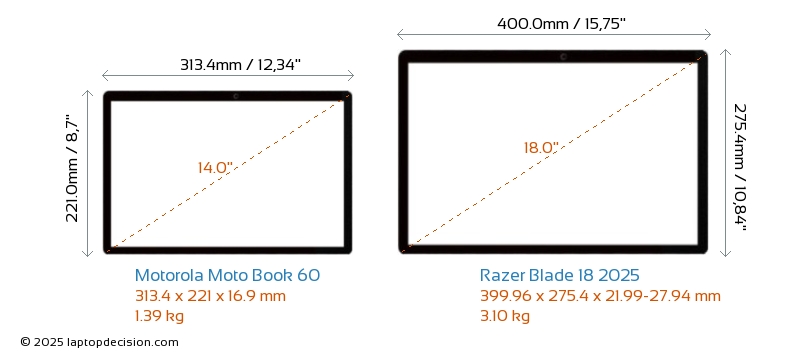 HDMIAmbos Moto Book 60 y Blade 18 2025 cuentan con un puerto HDMI. Moto Book 60 ofrece 1x HDMI 1.4, mientras que Blade 18 2025 ofrece 1x HDMI 2.1.
