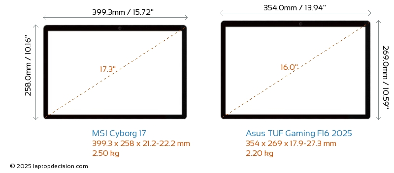 HDMIAmbos Cyborg 17 y TUF Gaming F16 2025 cuentan con un puerto HDMI (1x HDMI 2.1) para conectar a monitores externos.