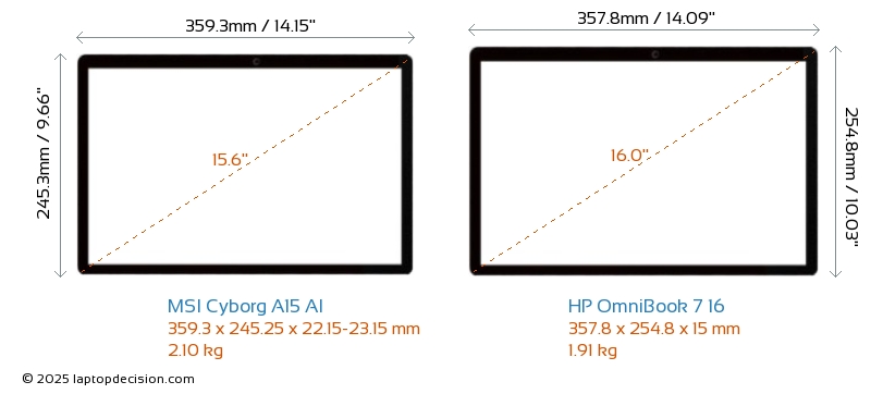 HDMIAmbos Cyborg A15 AI y OmniBook 7 16 cuentan con un puerto HDMI (1x HDMI 2.1) para conectar a monitores externos.