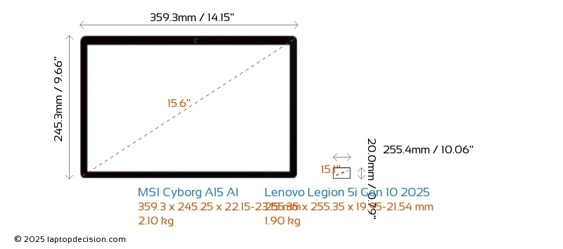 HDMIAmbos Cyborg A15 AI y Legion 5i Gen 10 2025 cuentan con un puerto HDMI (1x HDMI 2.1) para conectar a monitores externos.