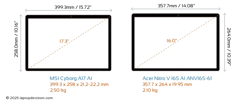 ThunderboltNinguno de los dos Cyborg A17 AI ni Nitro V 16S AI ANV16S-61 tiene puerto Thunderbolt.