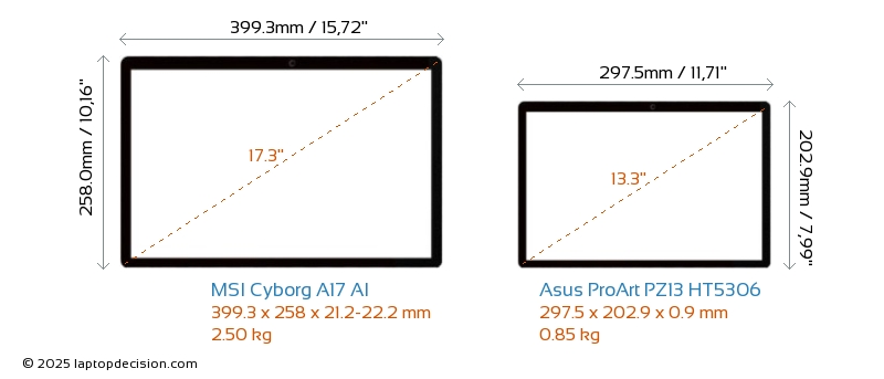 ThunderboltNinguno de los dos Cyborg A17 AI ni ProArt PZ13 HT5306 tiene puerto Thunderbolt.