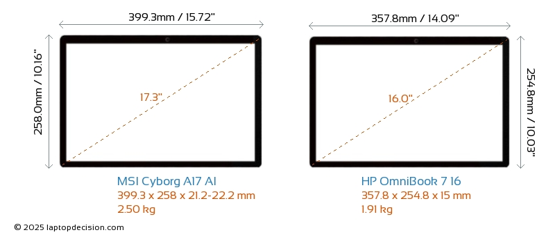 HDMIAmbos Cyborg A17 AI y OmniBook 7 16 cuentan con un puerto HDMI (1x HDMI 2.1) para conectar a monitores externos.