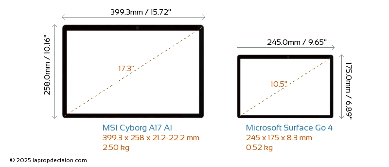 HDMI Cyborg A17 AI cuenta con un puerto HDMI (1x HDMI 2.1) para conectar a monitores externos. Surface Go 4 no tiene puerto HDMI.