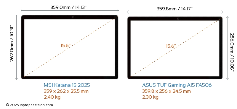 USBAmbos Katana 15 2025 y TUF Gaming A15 FA506 cuentan con 3x USB 3.2 puertos USB-A.Ambos Katana 15 2025 y TUF Gaming A15 FA506 cuentan con 1x USB 3.2 puertos USB Type-C.