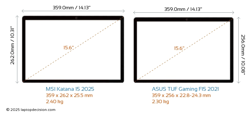 ThunderboltTUF Gaming F15 2021 está equipado con un puerto Thunderbolt 4. Katana 15 2025 no tiene puerto Thunderbolt.