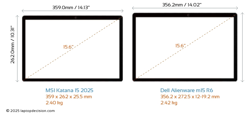 USBAmbos Katana 15 2025 y Alienware m15 R6 cuentan con 3x USB 3.2 puertos USB-A.Ambos Katana 15 2025 y Alienware m15 R6 cuentan con 1x USB 3.2 puertos USB Type-C.
