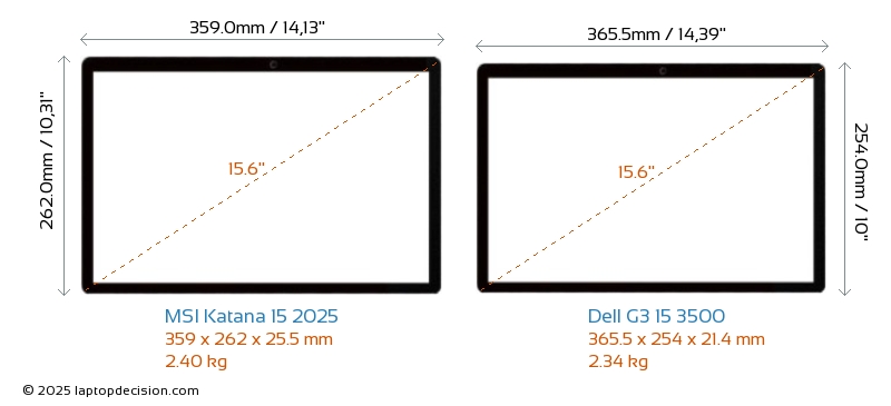 USBAmbos Katana 15 2025 y G3 15 3500 cuentan con 3x USB 3.2 puertos USB-A. Katana 15 2025 está equipado con 1x USB 3.2 puertos USB Type-C. G3 15 3500 no tiene puertos USB Type-C.
