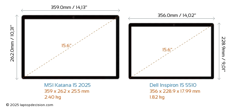 Lector de Tarjetas SDInspiron 15 5510 está equipado con un lector de tarjetas SD para un fácil acceso a las tarjetas de memoria. Katana 15 2025 no tiene lector de tarjetas SD.