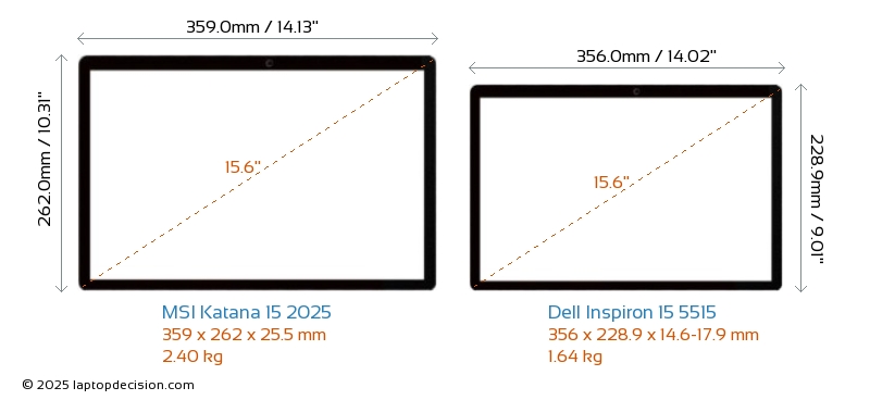 ThunderboltNinguno de los dos Katana 15 2025 ni Inspiron 15 5515 tiene puerto Thunderbolt.