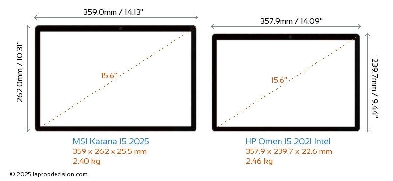 HDMIAmbos Katana 15 2025 y Omen 15 2021 Intel cuentan con un puerto HDMI (1x HDMI 2.1) para conectar a monitores externos.