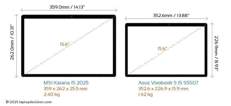 ThunderboltNinguno de los dos Katana 15 2025 ni Vivobook S 15 S5507 tiene puerto Thunderbolt.
