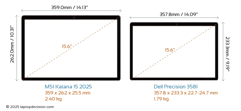 HDMIAmbos Katana 15 2025 y Precision 3581 cuentan con un puerto HDMI. Katana 15 2025 ofrece 1x HDMI 2.1, mientras que Precision 3581 ofrece 1x HDMI 2.0.