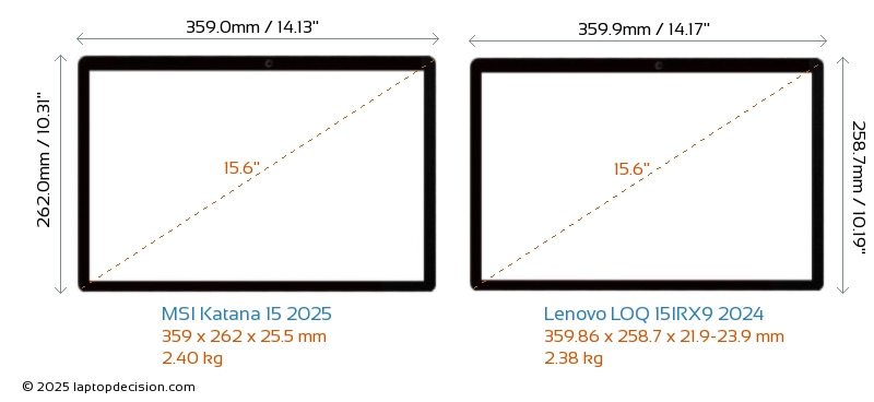 USBAmbos Katana 15 2025 y LOQ 15IRX9 2024 cuentan con 3x USB 3.2 puertos USB-A.Ambos Katana 15 2025 y LOQ 15IRX9 2024 cuentan con 1x USB 3.2 puertos USB Type-C.