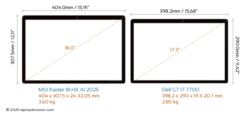 USBAmbos Raider 18 HX AI 2025 y G7 17 7700 cuentan con 3x USB 3.2 puertos USB-A. Raider 18 HX AI 2025 está equipado con 2x USB 4.0 puertos USB Type-C. G7 17 7700 no tiene puertos USB Type-C.