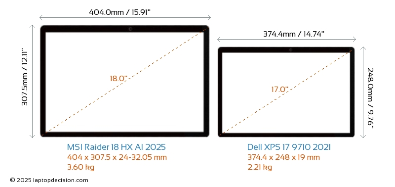 HDMI Raider 18 HX AI 2025 cuenta con un puerto HDMI (1x HDMI 2.1) para conectar a monitores externos. XPS 17 9710 2021 no tiene puerto HDMI.