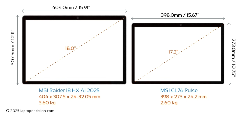 USBAmbos Raider 18 HX AI 2025 y GL76 Pulse cuentan con 3x USB 3.2 puertos USB-A.Ambos Raider 18 HX AI 2025 y GL76 Pulse tienen puertos USB Type-C. Raider 18 HX AI 2025 tiene 2x USB 4.0 puertos USB Type-C, mientras que GL76 Pulse tiene 1x USB 3.2 puertos USB Type-C.