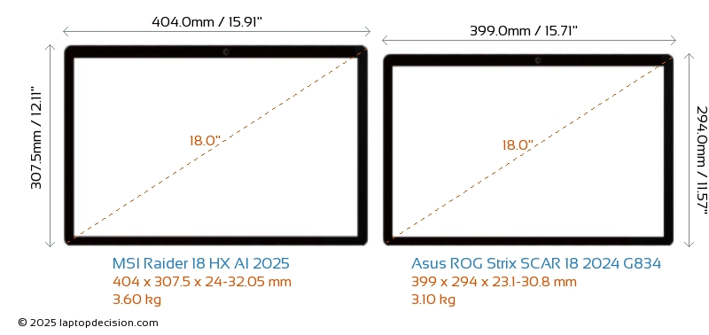 HDMIAmbos Raider 18 HX AI 2025 y ROG Strix SCAR 18 2024 G834 cuentan con un puerto HDMI (1x HDMI 2.1) para conectar a monitores externos.