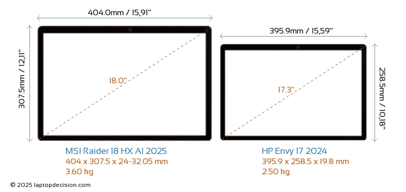HDMIAmbos Raider 18 HX AI 2025 y Envy 17 2024 cuentan con un puerto HDMI (1x HDMI 2.1) para conectar a monitores externos.