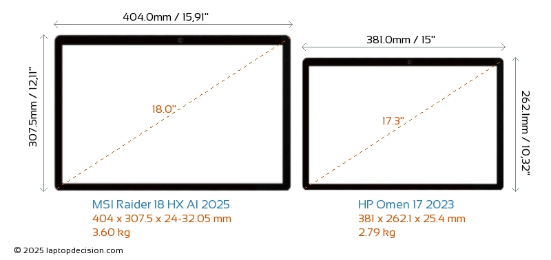 HDMIAmbos Raider 18 HX AI 2025 y Omen 17 2023 cuentan con un puerto HDMI (1x HDMI 2.1) para conectar a monitores externos.