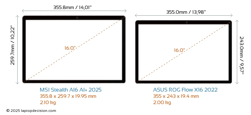 Thunderbolt Stealth A16 AI+ 2025 está equipado con un puerto Thunderbolt 4. ROG Flow X16 2022 no tiene puerto Thunderbolt.