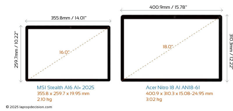 HDMIAmbos Stealth A16 AI+ 2025 y Nitro 18 AI AN18-61 cuentan con un puerto HDMI (1x HDMI 2.1) para conectar a monitores externos.